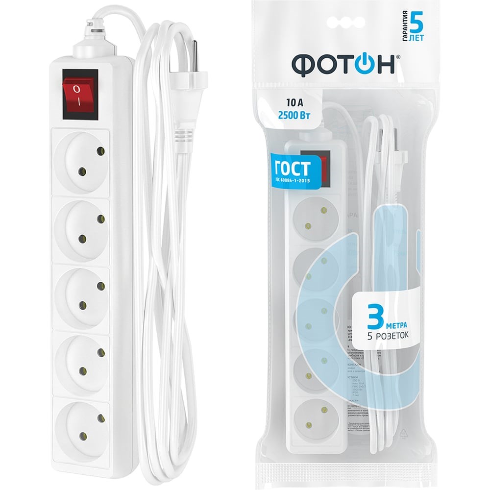 Удлинители БЕЗ ЗАЗЕМЛЕНИЯ рассчитаны на одновременное подключение приборов суммарной мощностью до 2500 Вт (номинальный ток - 10А). Провод 2х0,75мм (квадратных) - сечение проводника 0,75 мм (квадратных). Латунная контактная группа обеспечивает высокую электропроводность и максимально плотный контакт со штырями вилки подключаемых приборов. Корпус изготовлен из термоустойчивого и ударопрочного ABS-пластика. Все удлинители ФОТОН предназначены для подключения к розеткам европейского стандарта. * Отсутствие искрения* Электро- пожаробезопасность Выключатель на корпусе удлинителя позволяет обесточивать все разъемы удлинителя одним нажатием кнопки. Защитный бортик высотой 12 мм исключает риски поражения электрическим током при случайном попадании пальца в зазор между вилкой и гнездовым разъемом. Вся продукция полностью соответствуют нормам российского ГОСТ и EAC. Все удлинители ФОТОН проходят двойной контроль качества и работоспособности.