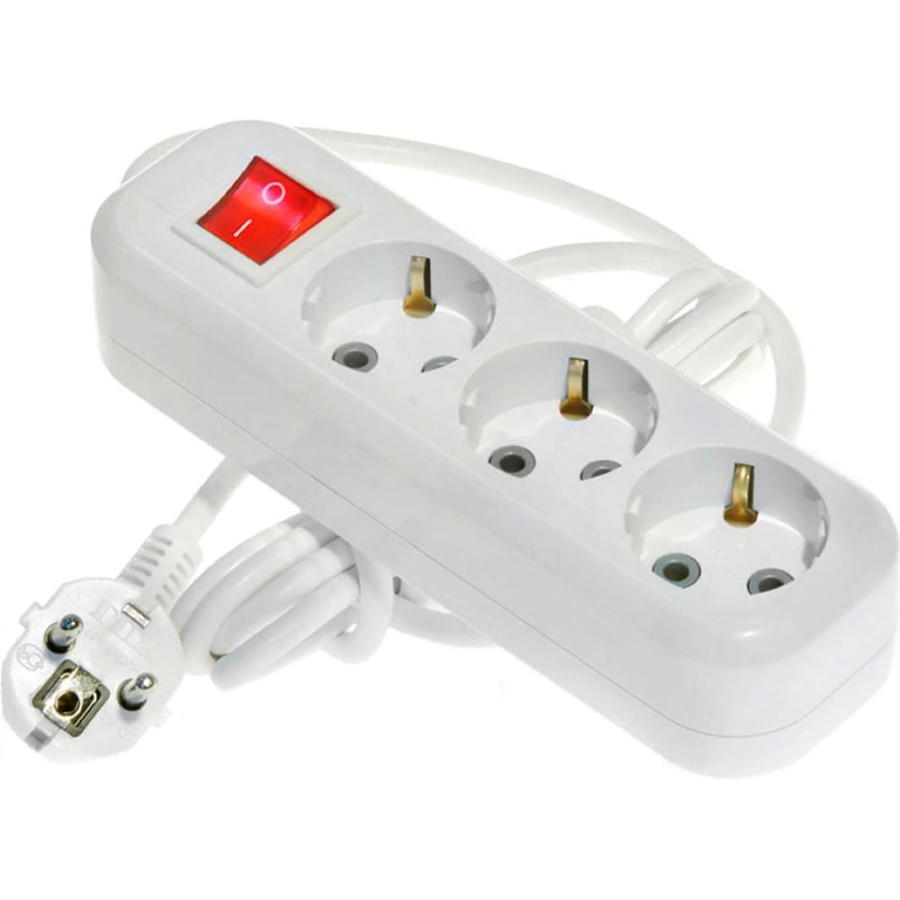 Сетевой удлинитель Lux У3-ЕВК-02 с выключателем 3-местный c заземлением 250 В 16 А 2 м 4606400419860