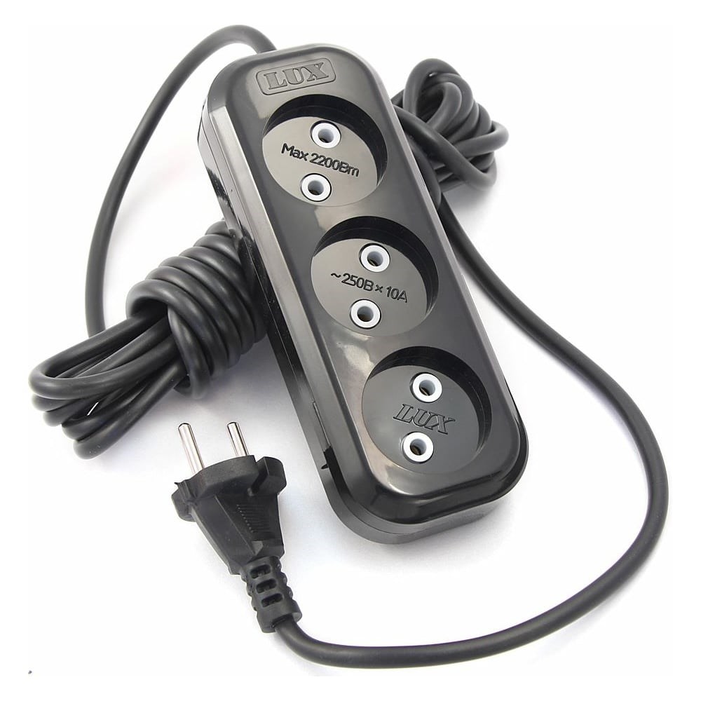 Сетевой удлинитель, черный У3-О-02 3-местный б/з, 250В, 10А, 2м LUX 4606400418931 оснащен тремя розетками, служит для одновременного подключения к сети переменного тока нескольких бытовых электроприборов. Изделие состоит из пластиковой колодки и качественного питающего провода с вилкой. Удлинитель износоустойчив и полностью электробезопасен. Изоляция надежно защищает от влаги и от механических повреждений.