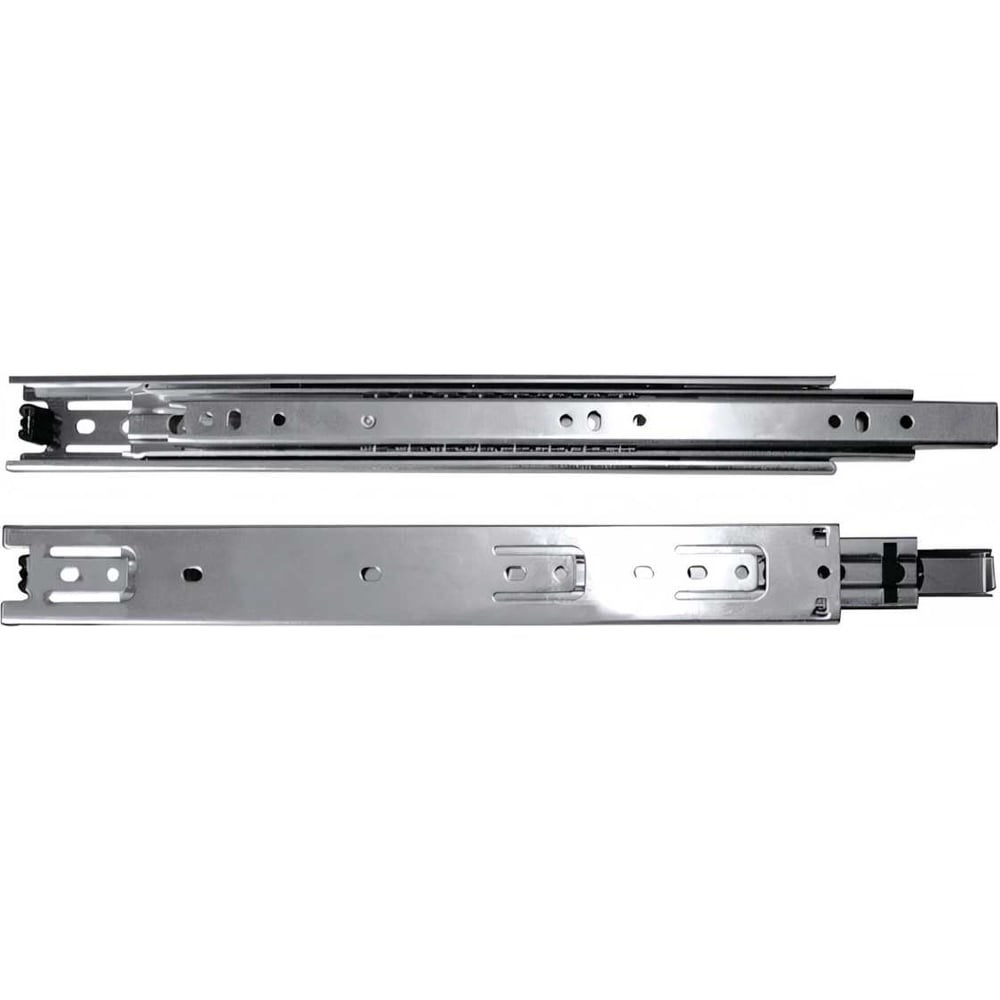 Шариковая направляющая полного выдвижения STARFIX 550x45 мм, цинк, 2 шт. SMF-10429 – мебельная фурнитура, которая используется для монтажа выдвижных ящиков. Для установки необходимо разобрать направляющую, отстегнув половину закрепляемую на выдвижном элементе (при помощи специальной защелки), после установки в изделии обе половинки направляющей необходимо совместить друг с другом и задвинуть ящик пока не раздастся щелчок. Выдвижение происходит за счет нескольких рядов шариков, удерживаемых клетках, перемежающихся в специальных пазах.
