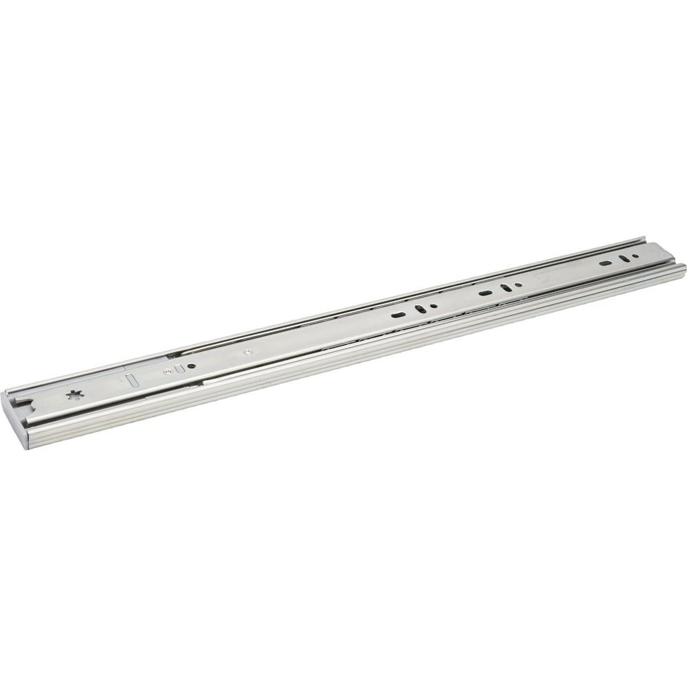 Шариковые направляющие полного выдвижения с доводчиком MF ширина 45 мм, длина 450 мм 13004v имеют толщину стали 1.5 мм и рассчитаны на нагрузку 35 кг. Телескопический механизм обеспечивает полный доступ к пространству ящика. Ход направляющих мягкий и бесшумный. Система фиксации доводчика работает бесперебойно и имеет двойную защиту от случайного соскакивания. Внимание! Ширина ящика не должна превышать 600 мм.
