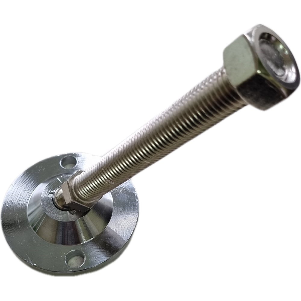 Регулируемая шарнирная стальная опора представляет собой надежное и универсальное решение для установки различного оборудования на твердых поверхностях. Благодаря своей высокой несущей способности, данная опора идеально подходит для использования в качестве опорных ножек для станков, мебели, а также металлических конструкций.Ключевые характеристики:Размер основания: 100 мм.Материал основания: Основание изготовлено из хромированной стали, что обеспечивает прочность и долговечность, а также придает изделию эстетический внешний вид благодаря блестящей поверхности.Регулировочный винт: Изготовлен из углеродистой никелированной стали, что гарантирует его коррозийную стойкость и прочность. В комплекте поставляется с регулировочной гайкой, что позволяет легко настраивать высоту опоры.Резьба: М20, 100 мм.Шаг резьбы: 2,5 мм.Максимальная статическая нагрузка: 1 200 кг.