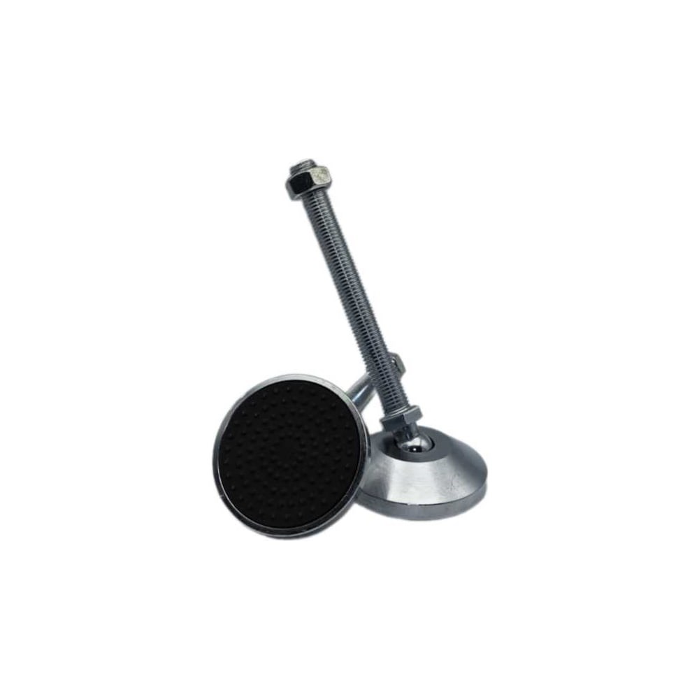 Регулируемая шарнирная стальная опора представляет собой надежное и универсальное решение для установки различного оборудования на твердых поверхностях. Благодаря своей высокой несущей способности, данная опора идеально подходит для использования в качестве опорных ножек для станков, мебели, а также металлических конструкций.Ключевые характеристики:Размер основания: 80 мм.Материал основания: Основание изготовлено из хромированной стали, что обеспечивает прочность и долговечность, а также придает изделию эстетический внешний вид благодаря блестящей поверхности.Регулировочный винт: Изготовлен из углеродистой никелированной стали, что гарантирует его коррозийную стойкость и прочность. В комплекте поставляется с регулировочной гайкой, что позволяет легко настраивать высоту опоры.Резьба: М16, 150 мм.Шаг резьбы: 2 мм.Максимальная статическая нагрузка: 2 000 кг.Преимущества:Универсальность: Подходит для широкого спектра применений и может использоваться в различных условиях эксплуатации.Высокая несущая способность: Обеспечивает надежную поддержку даже для тяжелого оборудования.Простота регулировки: Регулировка высоты осуществляется быстро и легко благодаря удобному регулировочному винту.Долговечность: Выбор материалов гарантирует длительный срок службы продукта.