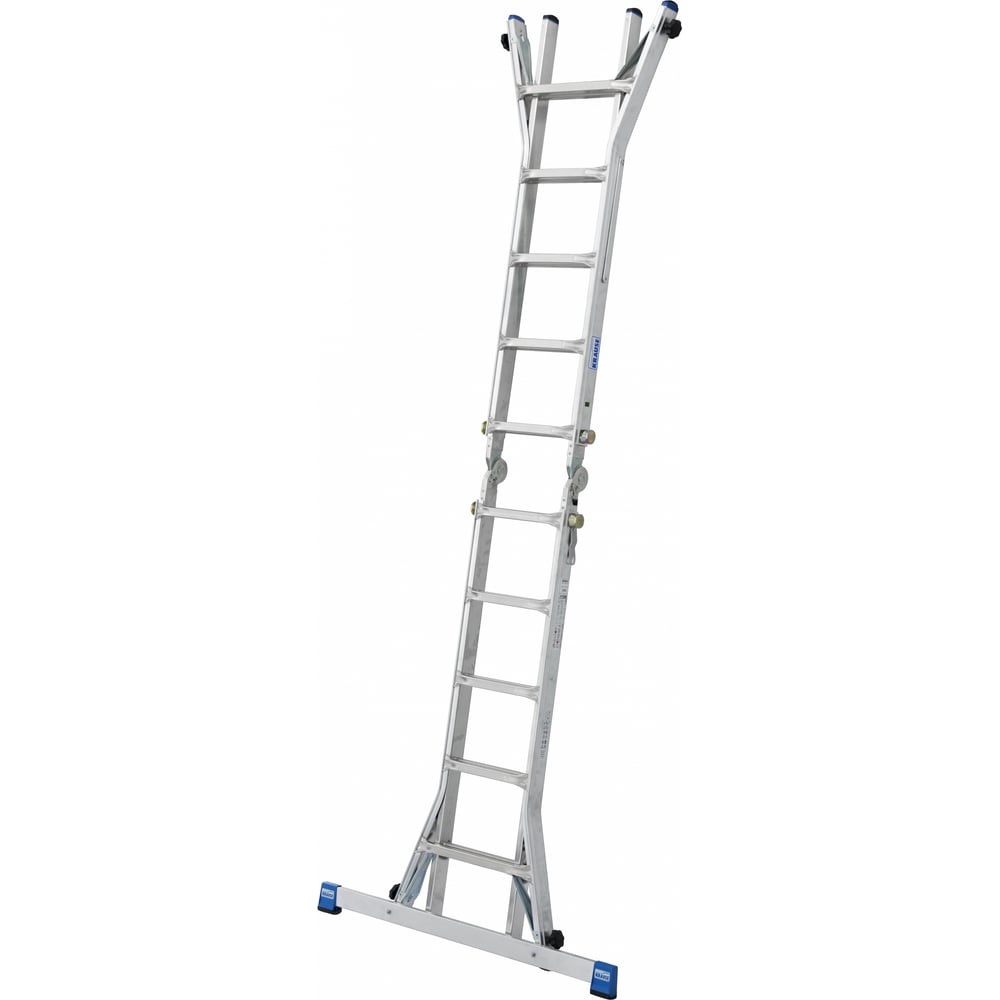 Шарнирная телескопическая лестница KRAUSE STABILO с удлинителями боковин 4 х 4 перекладины 133977 подойдет для работы внутри и снаружи помещений для монтажа, обслуживания и ремонта на высоте. Конструкция способна трансформироваться в двухстороннюю стремянку, приставную лестницу, а также в две двухсторонние стремянки. Конструкция выполнена из алюминия и оснащена удлинителями боковин, что позволяет использовать изделие на лестницах, уступах и различных неровных поверхностях.
