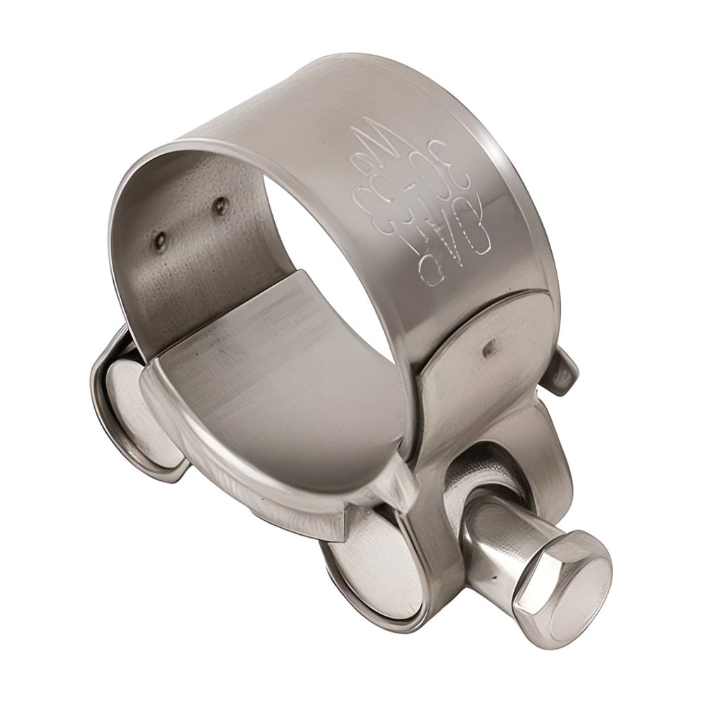 Шарнирный хомут DAR 30-33 50408 предназначен для монтажа толстостенных армированных рукавов, работающих под высоким давлением. Гладкая лента и развальцовка краев обеспечивают безопасное применение и исключают повреждение трубы или рукава при вибрации. В отличии от аналогов, шарнирный хомут DAR выдерживает двукратные моменты затяжки, а сварные точки не тянутся при гидроударах, что позволяет использовать его в ответственных соединениях, где предъявляются высокие требования безопасности. Данный хомут изготовлен из нержавеющей стали W2. (Лента и вкладыш - нержавеющая сталь. Втулка, шарниры и болт - оцинкованная сталь.)