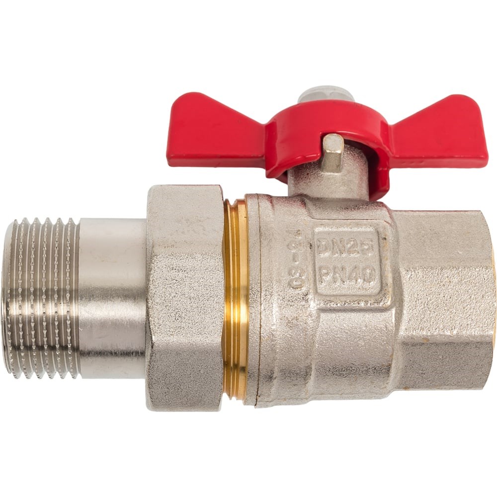 Шаровой кран со сгоном MVI американка, бабочка ВН/НАР ДУ 25, 1" BV52006 применяется в качестве запорной арматуры на трубопроводах систем питьевого и хозяйственного назначения, горячего водоснабжения, отопления, сжатого воздуха, жидких углеводородов, а также на технологических трубопроводах, транспортирующих жидкости, не агрессивные к материалам крана. Использование шаровых кранов в качестве регулирующей арматуры не допускается. Широкий температурный диапазон для эксплуатации – кран можно устанавливать в системах, где температура рабочей среды варьируется от -20 до 120 градусов. Ремонтопригоден. Срок службы 30 лет. Максимальная рабочая температура среды - 150 °С. Номинальное давление PN - 40 бар. Марка латуни - ЛС-59-2 (РФ)/CW617N (EN).