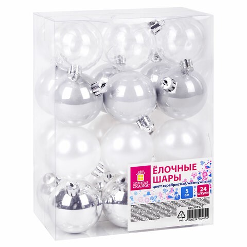 Шары ёлочные 24 шт., 5 см "Eden Colors", пластик, цвет: серебристый/жемчужный, ЗОЛОТАЯ СКАЗКА, 591977