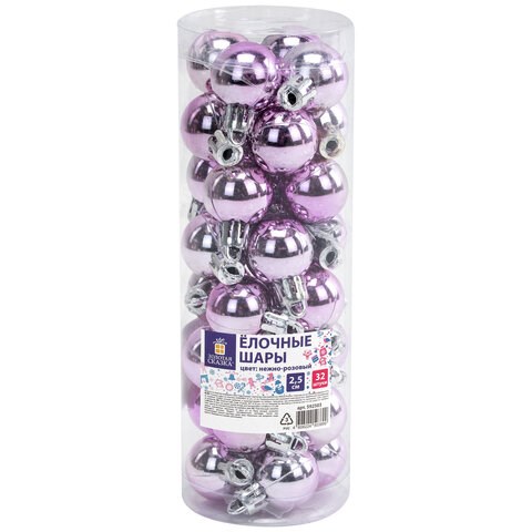 Шары ёлочные 32 шт., 2,5 см, "Tender Shine", пластик, розовые, глянец, ЗОЛОТАЯ СКАЗКА, 592503