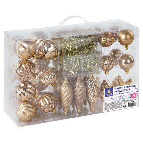 Шары новогодние ёлочные "Gold Rush" НАБОР 39 предметов, пластик, золотистый, ЗОЛОТАЯ СКАЗКА, 591128
