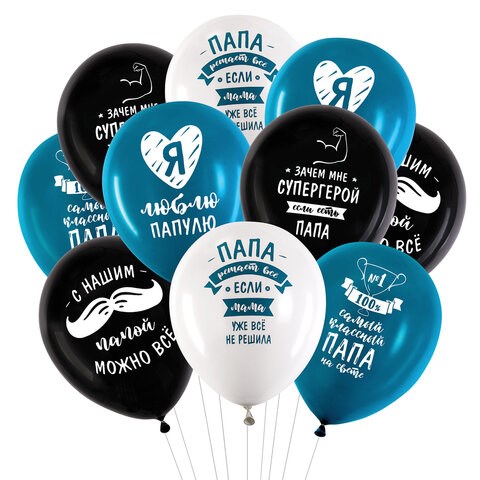 Шары воздушные 30 см с рисунком "Для папы", КОМПЛЕКТ 10 штук, ассорти, BRAUBERG, 591894