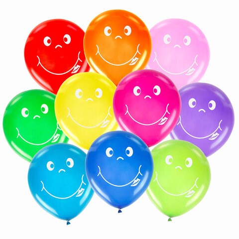 Высококачественные шары классической формы с рисунком "Смайл". Изготовлены из натурального латекса, обеспечивающего прочность изделия при аккуратном использовании. Стандартный размер - 30 см. 50 шаров 10 разнообразных насыщенных цветов украсят любой интерьер.