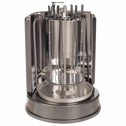 Вертикальная конструкция электрошашлычницы позволяет избежать стандартных проблем при готовке шашлыка. Например, мясо получается насыщенным, потому что сок при жарке скользит и впитывается кусочками, которые расположены ниже.