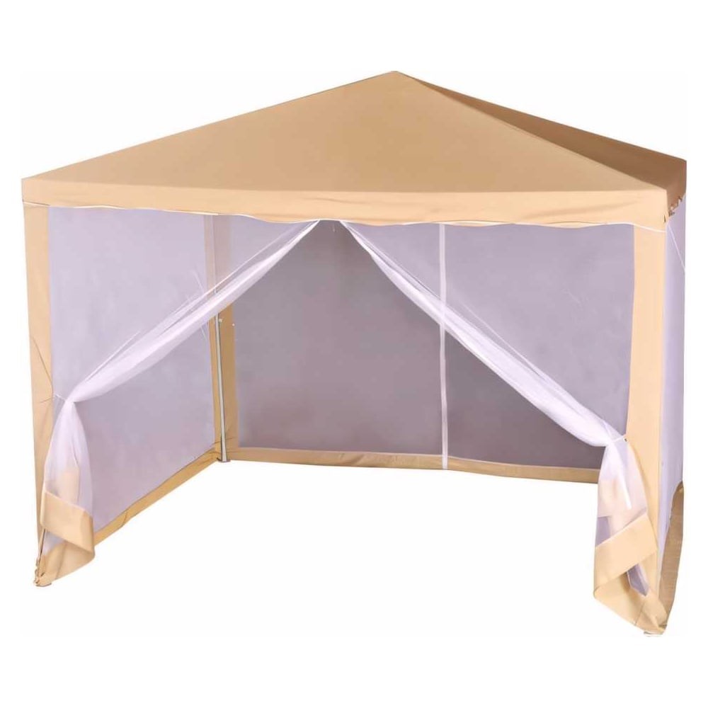 Шатер Green Glade 1040 не имеет стенок, но зато оснащен антимоскитными сетками, что гарантирует хорошую вентиляцию. Имеет высоту 2.5 метра, что позволяет высокому человеку стоять в полный рост. Большой тент, выполненный из полиэстера 160 г. В собранном виде изделие не занимает много места и может перевозиться в багажнике автомобиля.