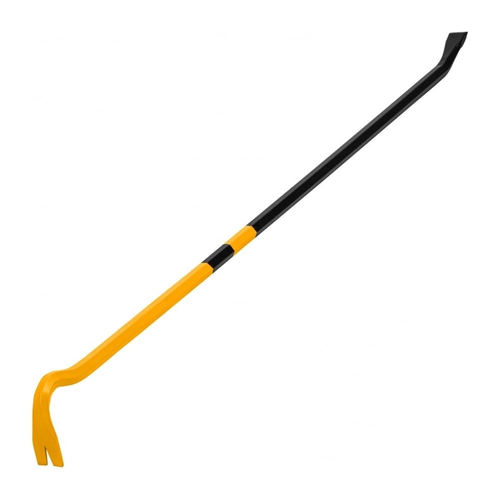 Лом-гвоздодер Denzel 1200 мм, шестигранный 19 мм, окрашенный, сталь 65 25205 предназначен для извлечения гвоздей и демонтажа различных конструкций. Инструмент изготовлен из проката шестигранного сечения. Корпус гвоздодера кованый и изготовлен из стали марки 65, поэтому отличается прочностью, не гнется и не ломается. Твердость рабочих частей составляет 40-50 HRC, что повышает долговечность инструмента. Шестигранный профиль гвоздодера выдерживает повышенные нагрузки. Инструмент имеет яркое антикоррозионное покрытие.