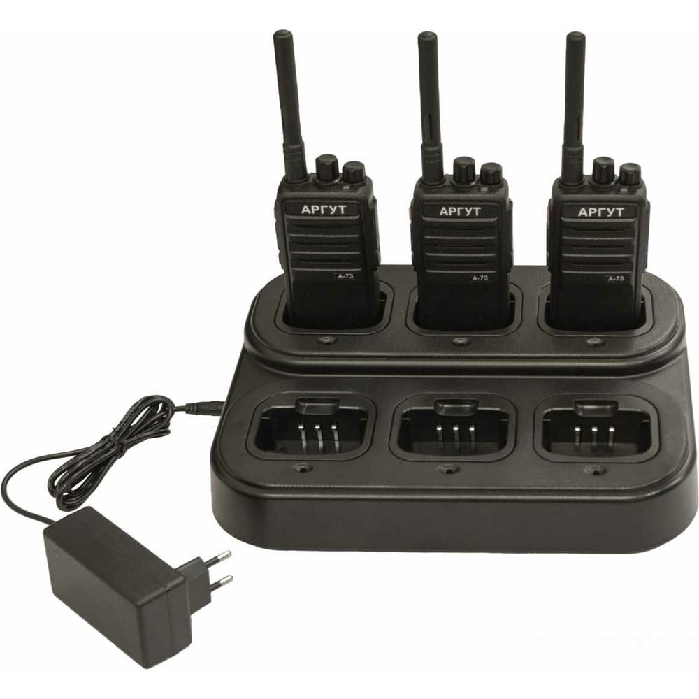 Шестипозиционное зарядное устройство Аргут А-73 RU52042 выпускается для профессионального применения радиостанций. Состоит из двух модулей: шестиместной базы и адаптера питания.