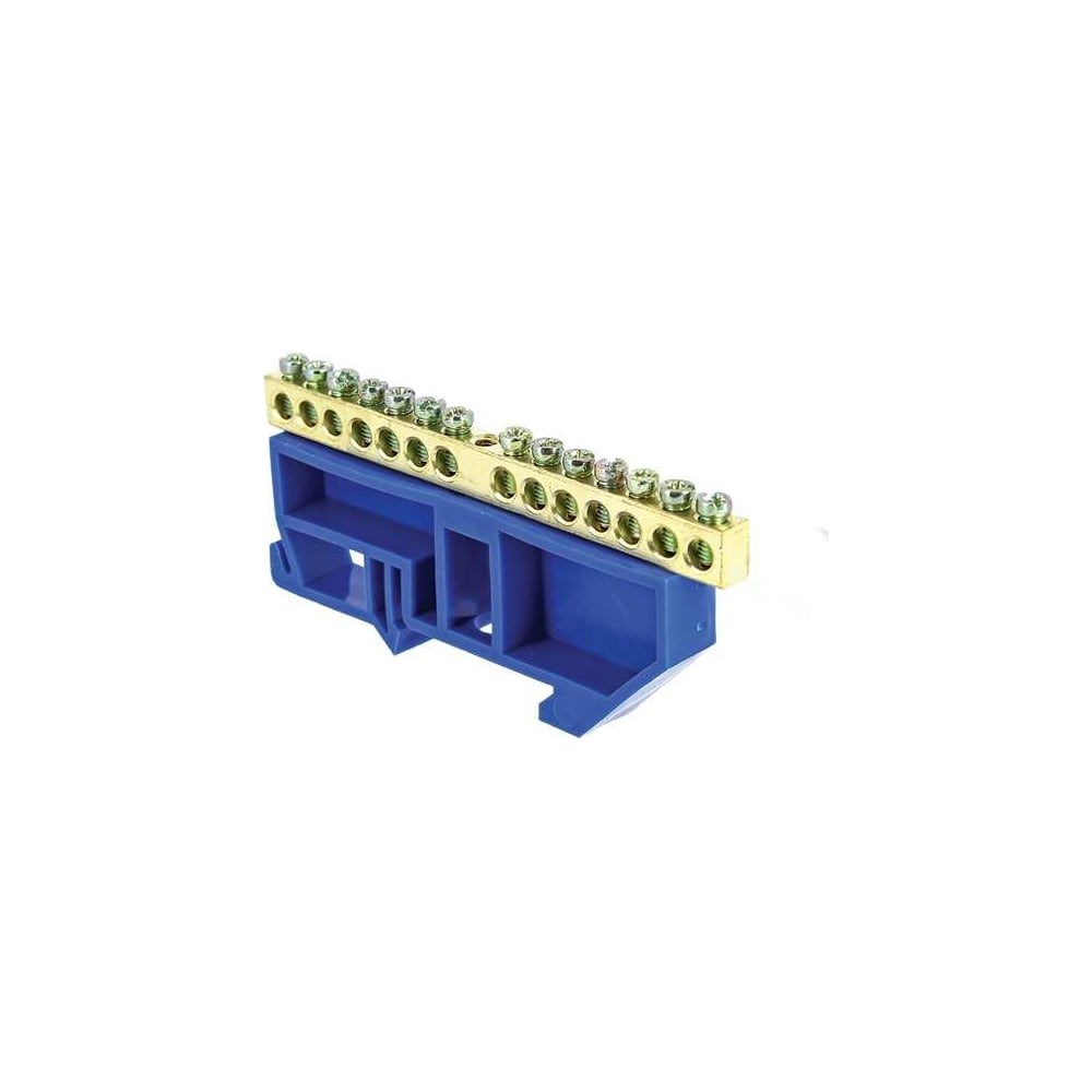 Шина EKF "0" N (6x9мм) 14 отверстий, латунь, синий изолятор на DIN-рейку, коробка (20 шт) PROxima sn0-63-14-d