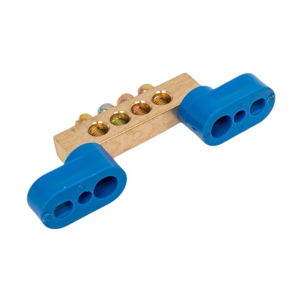 Шина N ноль на двух угловых изоляторах ЭРА NO-222-65 ШНИ-8х12-4-У2-Синий Б0033444 предназначена для электрического и механического соединения нулевых, защитных и фазных проводников. Выполнена из высококачественной латуни, установленной на пластиковый изолятор или в изолятор, изготовленный из самозатухающего пластика.
