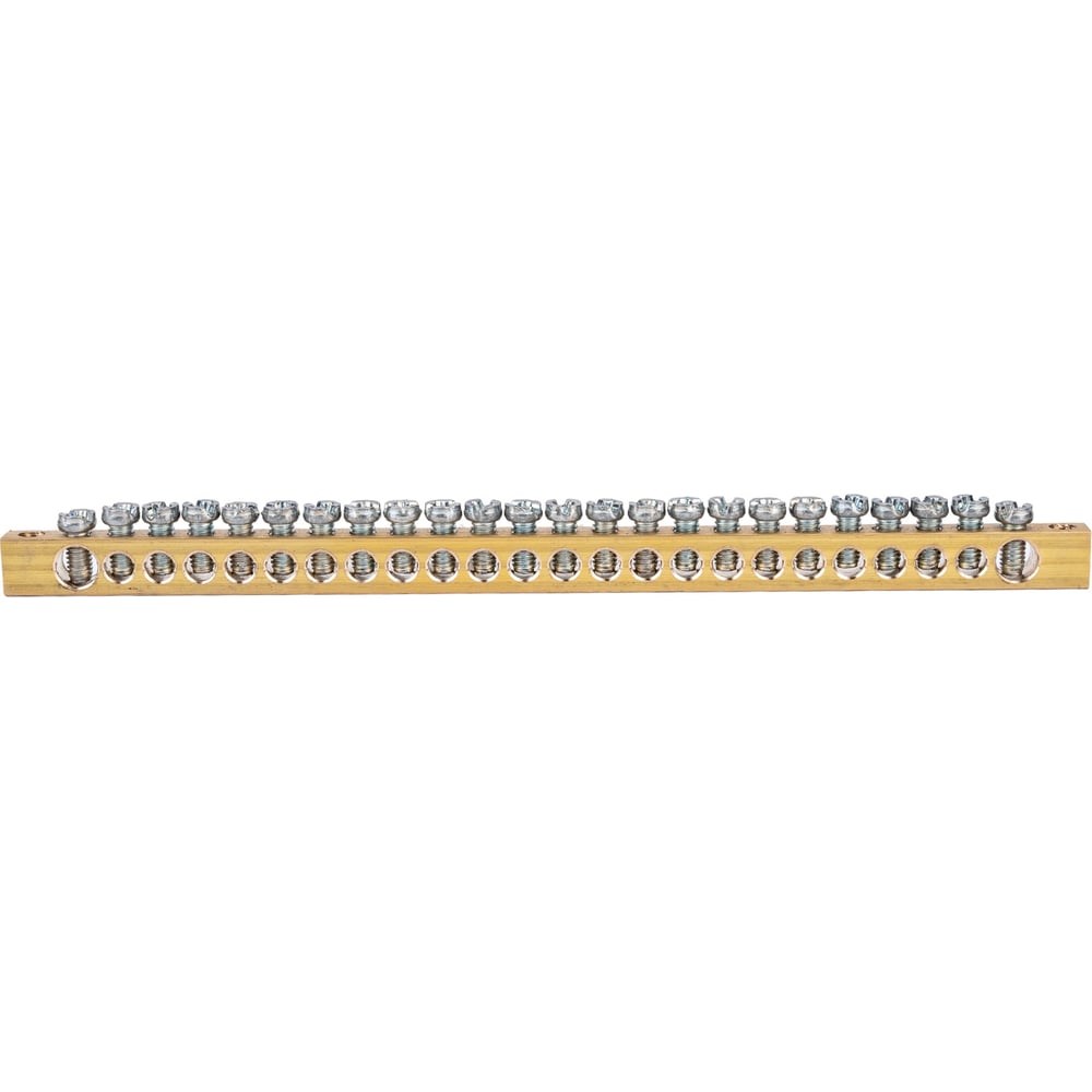 Шина земля-ноль PEN без изолятора предназначена для электрического и механического соединения нулевых, защитных и фазных проводников. Применяется для установки на токоведущую шину в промышленных щитах или на специальный суппорт в модульных шкафах. Крепление осуществляется по краям.Шина выполнена из высококачественной латуни с содержание меди не ниже 58%, что гарантирует надежное электрическое соединение и высокую стойкость к коррозии. Винты на шине имеют скругленную контактную часть, которая предотвращает срез проводника при затяжке. Среднее значение относительной влажности при эксплуатации не должно превышать более 90%.