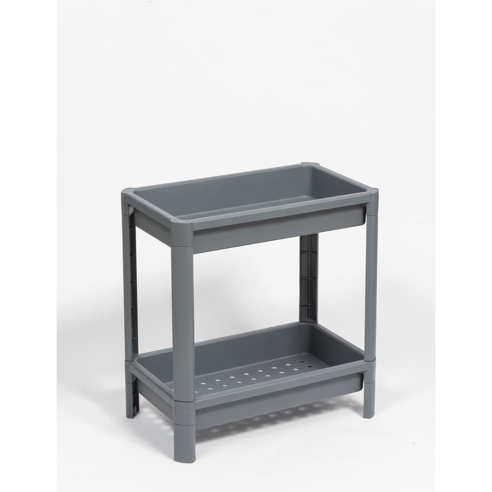 Этажерка Violet VIKEA широкая, 2-х ярусная, серая 781218 – идеальное решение для организации пространства на кухне и в ванной, в гостиной и на балконе, а также в любом другом помещении. Прекрасно впишется в пространство любой комнаты. Состоит из нескольких ярусов. Имеет оптимальное расстояние между полками. Это позволяет разместить все самые необходимые полезные в хозяйстве мелочи. Стойки надежно соединяются внутренним замком, что обеспечивает монолитность конструкции и дает возможность поднять и переместить этажерку за верхнюю полку. Каркас этажерки выполнен из прочного пластика и не прихотлив в уходе. Достаточно протереть влажной тряпкой или промыть под струей теплой воды. Изделие безопасно, не имеет острых углов и изготовлено из экологичного материала, не содержащего бисфенол А и предназначенного для контакта с пищевыми продуктами. Изделие поставляется в разобранном виде в индивидуальной коробке.