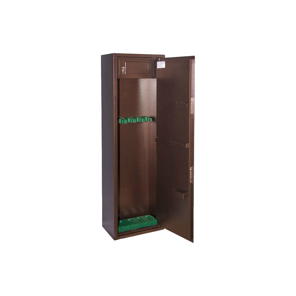 Шкаф КОНТУР КО-039т 360102148 предназначен для хранения гладкоствольного, травматического и короткоствольного нарезного оружия. Дверь имеет толщину 2 мм, что позволяет успешно сопротивляться резанию и сверлению.