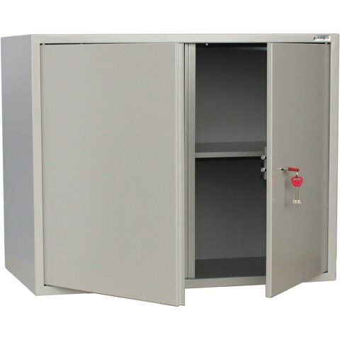 Комплектуется 1 съемной полкой. Толщина лицевой панели и корпуса - 1,2 мм. Дверь имеет двойные загибы со всех сторон, изнутри усилена ребром жесткости. Комплектуется ключевыми 6-ти сувальдными замками сейфового типа «BORDER» (Россия). В комплекте 2 ключа. Петли шкафа – внутренние. Шкаф представляет собой цельносварную металлическую конструкцию прямоугольной формы, соединение элементов которой выполнено методом сварки сплошным швом по контуру прилегания элементов. Шкафы соответствуют требованиям ТР ТС 025/2012 «О безопасности мебельной продукции».
