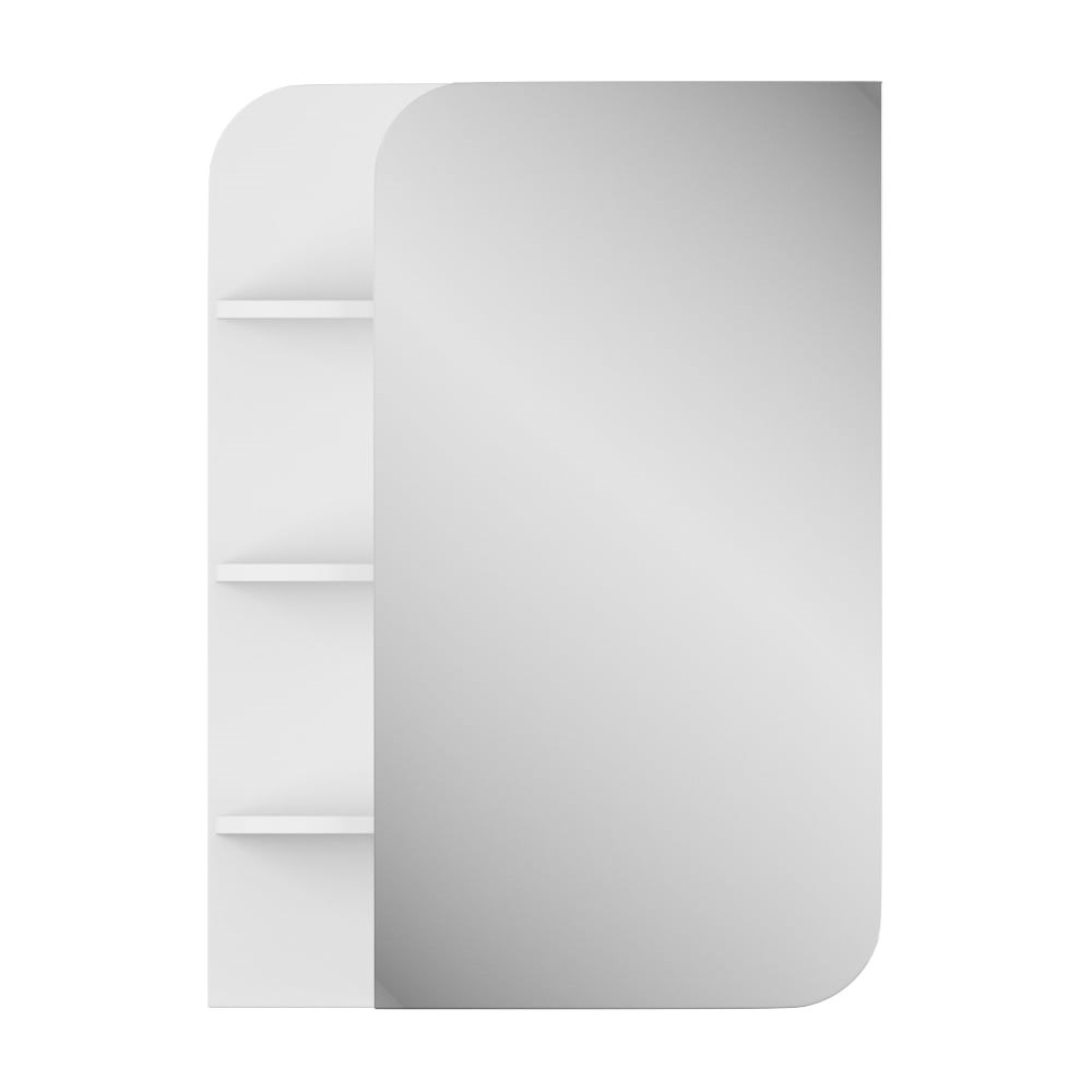 Зеркало-шкаф; 1 зеркальная дверка; 3 вкладные полки; одна ниша с 3-мя вкладными полками; фасад МДФ + пленка; зеркало; фурнитура Boyard (механизм доводчика); корпус ВЛДСП + пленка.