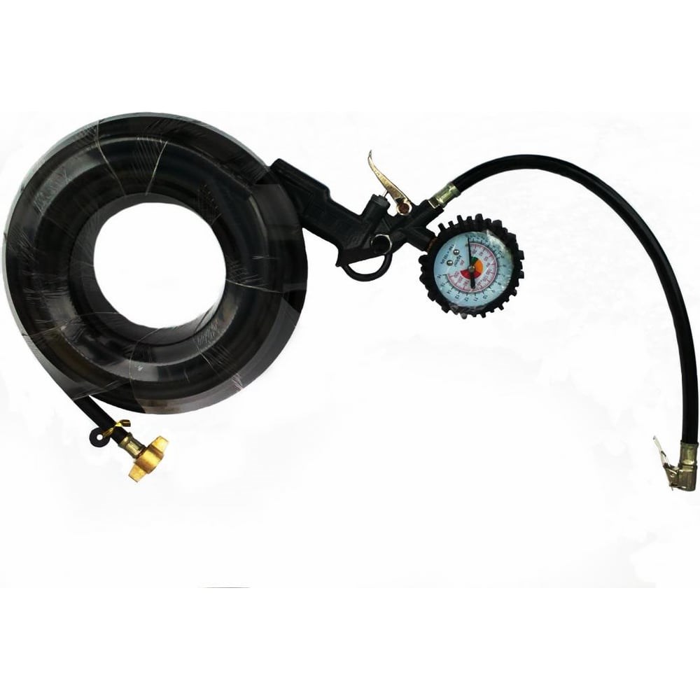 Шланг для подкачки изготовлен из высококачественного армированного кислородного шланга длиной 9м с рабочим давлением до 20атм. В комплектацию шланга входят: "барашек" (гайка) которая накручивается на выход ресивера вашего автомобиля, с противоположной стороны шланга находится пистолет с манометром до 16 атм и шлангом 0,3 м с наконечником "прищепка" Шланг с манометром и пистолетом DA-01341 предназначен для накачивания шин. Крючок для подвешивания позволяет экономить место при хранении.
