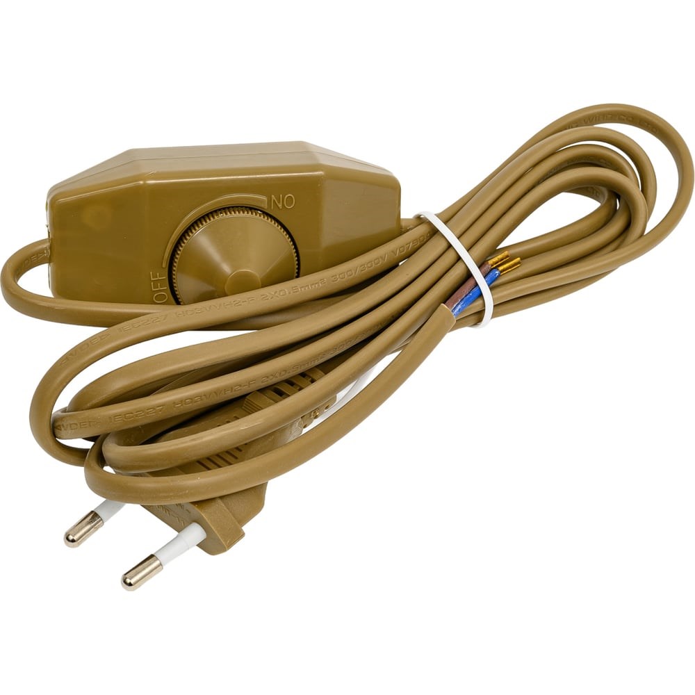 Шнур типа ШВВП со светорегулятором для подключения различных осветительных приборов (например, настенных светильников) к сети 220 В. Оснащён эргономичной плоской евровилкой и поворотным светорегулятором , позволяющим плавно регулировать яркость лампы в светоприборе. Конструкция износоустойчивая, универсальная и простая в монтаже. Длина провода - 2 метра. Цвет: золотой