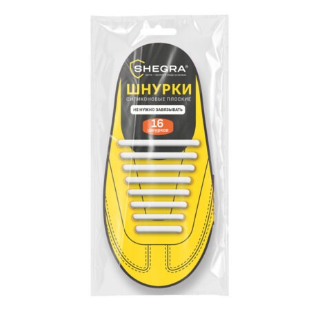 Шнурки силиконовые плоские БЕЛЫЕ 16 шт., ширина 7 мм, SHEGRA (ШЕГРА), 701716