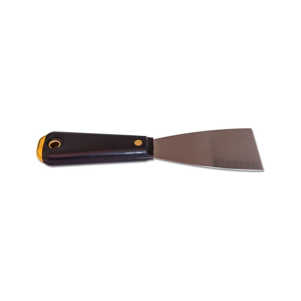 Шпатель для удаления ржавчины с металлическим бойком EUROTEX 65 мм 020612-025 удобен для проведения ремонтных работ. С помощью шпателя можно без труда очистить металлические изделия от ржавчины. Полотно изготовлено из полированной усиленной стали. На конце пластиковой рукоятки расположен боек.