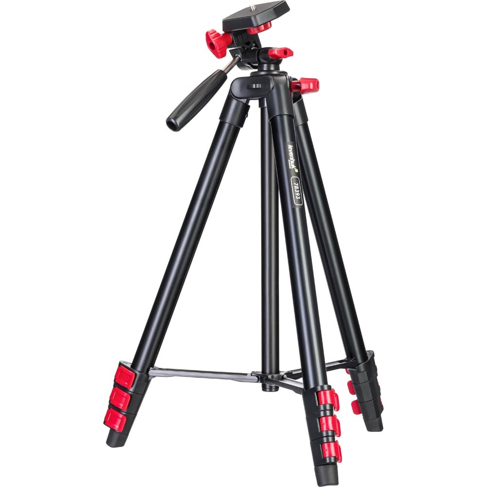 Штатив Levenhuk Level BASE TR10 78393 можно устанавливать самые разные приборы: фото- и видеокамеры, смартфоны, бинокли, монокуляры, осветители, проекторы и многое другое. Крепление стандартное – резьба 1/4 дюйма. Вес навесного оборудования не должен превышать 3 кг. Для установки некоторых приборов может понадобиться адаптер-переходник (приобретается отдельно). Штатив дополнен классической поворотной головкой, которую можно перемещать вверх и вниз, влево и вправо. Поворот в горизонтальной плоскости возможен на 360°. Для управления головкой используется удобная ручка. Установочная площадка расположена горизонтально, но ее можно откинуть вбок на угол до 90°. На всех осях есть фиксаторы. Регулировать высоту штатива можно двумя путями. Первый – поднять на нужную высоту центральную штангу, второй – выдвинуть ножки. Нужное положение ножек фиксируется при помощи флип-замков. Благодаря чехлу для переноски и хранения штатив удобно брать с собой в походы и поездки.