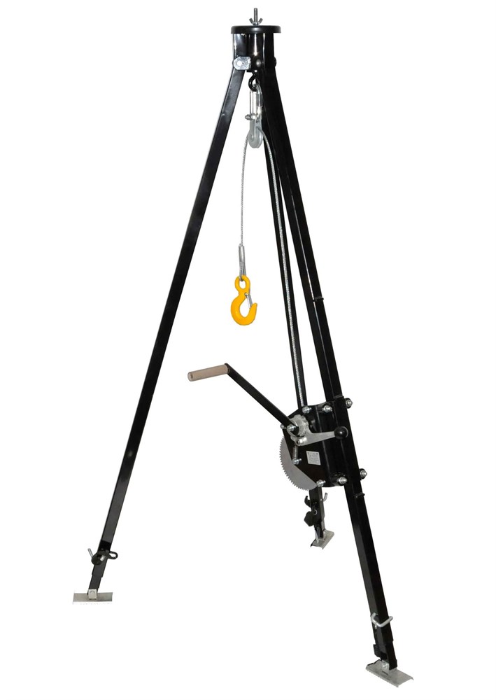 Штатив-тренога (трипод) – представляет собой переносной, временный элемент постоянной конструкции и служит для подъема, опускания и удержания лиц, работающих в канализационных колодцах, бассейнах, шахтах и других замкнутых пространствах.