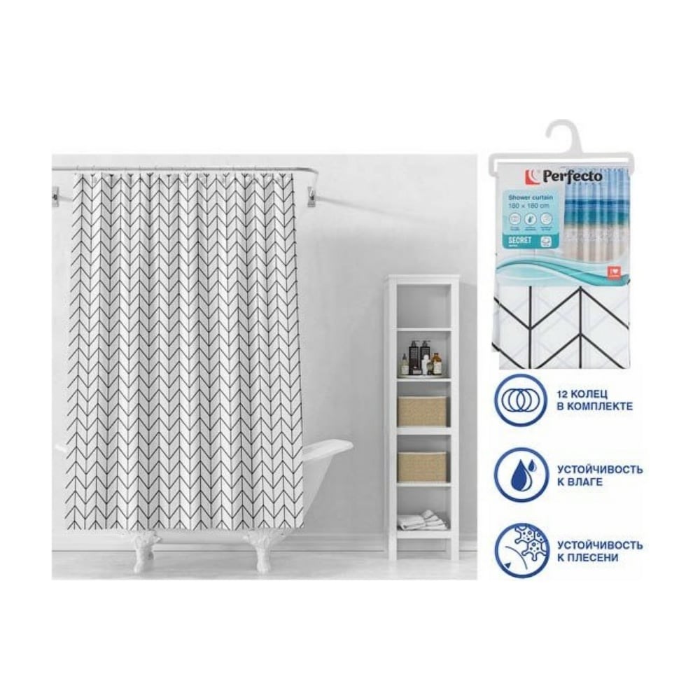 Штора для ванной комнаты PERFECTO LINEA Secret 180x180, с кольцами, векторная графика