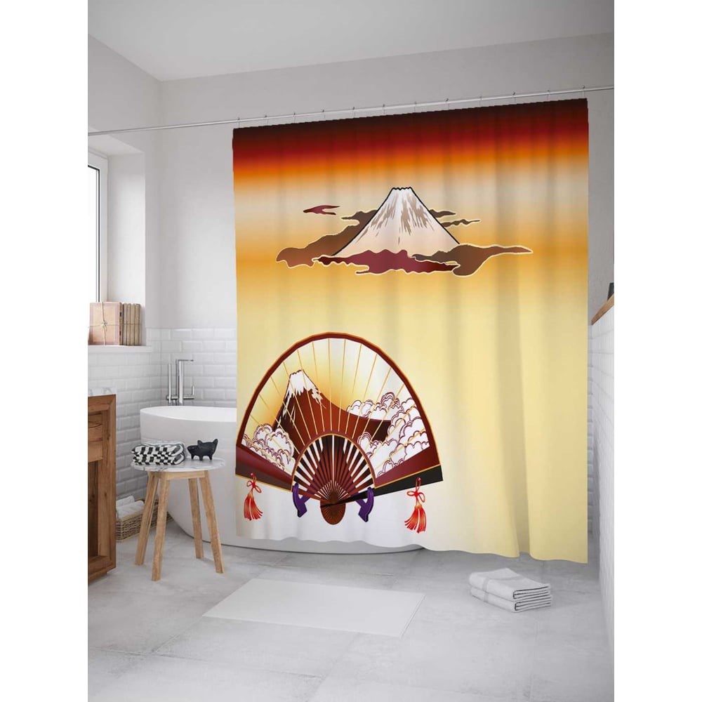 Шторка-занавеска для ванной JoyArty Фудзияма на японском веере