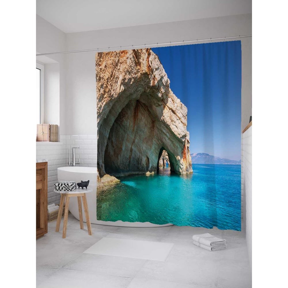 Шторка-занавеска для ванной JoyArty Греческие гроты Закинф