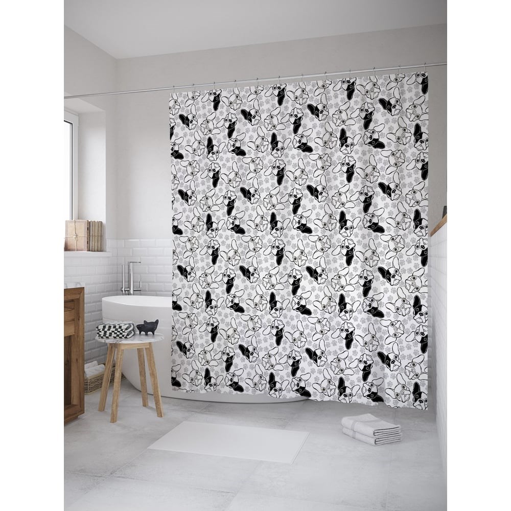 В отличие от подобных изделий из ПВХ и силикона, занавеска в ванную, пошитая из полиэстера, выгодно отличается красивым внешним видом, прочностью и длительным сроком службы. Водонепроницаемая ткань плотностью 80 г/м2 украшена стильным разноцветным принтом - нанесенная краска не боится контакта с горячей водой и не выцветает с течением времени. В комплект шторы для ванной размером 180х220 см входит 12 крючков, для которых уже подготовлены все нужные отверстия. Стиль: анимализм. Принт: Милые бульдоги. Цвет: серый, черный, белый. Рисунок: анималистический. Теги: друг, животное, пёс, собака, кобель, преданность, домашний, питомец. При покупке нужно учесть, что фактический размер изделия может отличаться от заявленного в пределах не более 5 см.