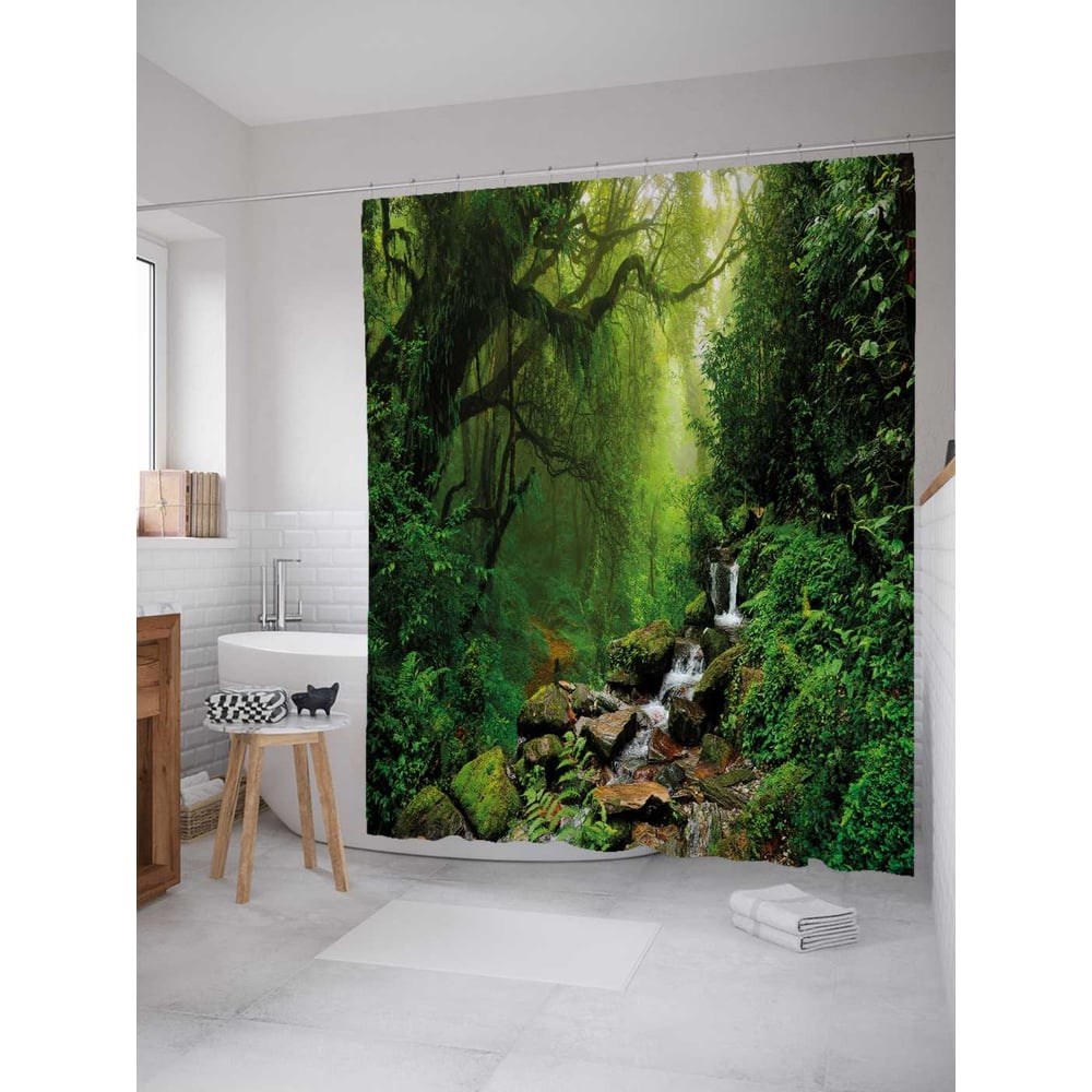 В отличие от подобных изделий из ПВХ и силикона, занавеска в ванную, пошитая из полиэстера, выгодно отличается красивым внешним видом, прочностью и длительным сроком службы. Водонепроницаемая ткань плотностью 80 г/м2 украшена стильным разноцветным принтом - нанесенная краска не боится контакта с горячей водой и не выцветает с течением времени. В комплект шторы для ванной размером 180х220 см входит 12 крючков, для которых уже подготовлены все нужные отверстия. Стиль: экостиль. Принт: Ручей в лесу. Цвет: зеленый, коричневый. Рисунок: пейзаж. Теги: лес, деревья, природа, камни, зелень. При покупке нужно учесть, что фактический размер изделия может отличаться от заявленного в пределах не более 5 см.