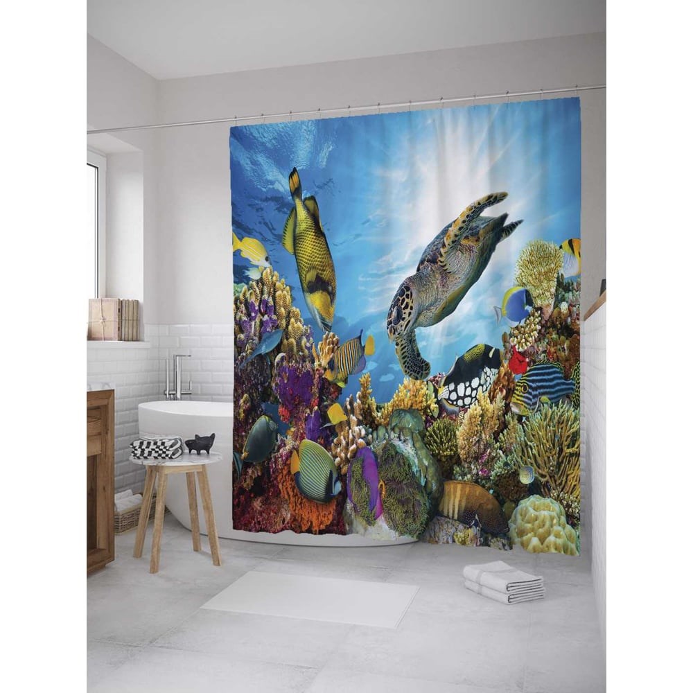 Шторка-занавеска для ванной JoyArty Рыбы и черепаха