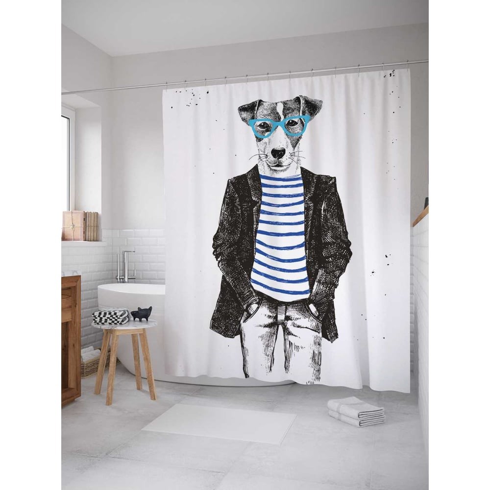 Шторка-занавеска для ванной JoyArty Собака в тельняшке
