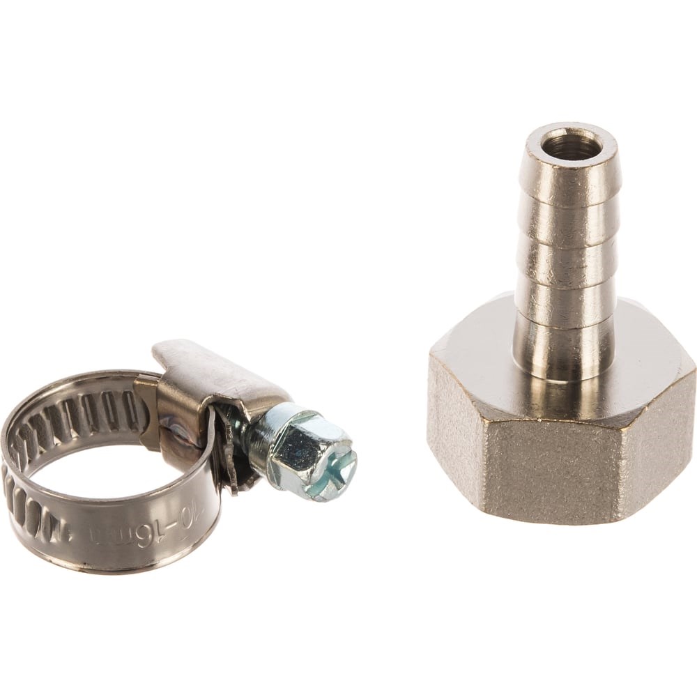 Газовый штуцер с внутренней резьбой применяется в местах подключения газовой подводки/шлага к резьбе в системе автономной или централизованного газоснабжения. Фитинг изготовлен из прочной сантехнической латуни, устойчивой к воздействию воды, высокой температуры и агрессивных химических веществ. Участок корпуса шестигранной формы «под ключ» обеспечивает удобство монтажа. В комплект входит универсальный металлический хомут для надежной фиксации газового шланга/подводки.Правая резьба.