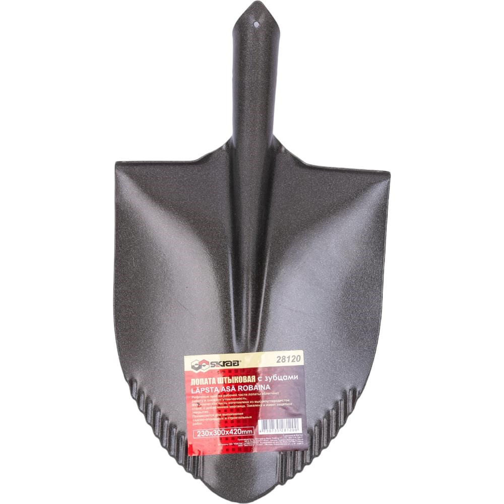 Лопата SKRAB штыковая с зубцами 230х300 б/ручки 28120 применяется для выполнения садово-огородных и строительных работ. Металлическая часть изготовлена из высокоуглеродистой стали с использованием марганца. Закалена и имеет защитное покрытие. Рифленые края на рабочей части лопаты облегчают работу и снижают утомляемость.