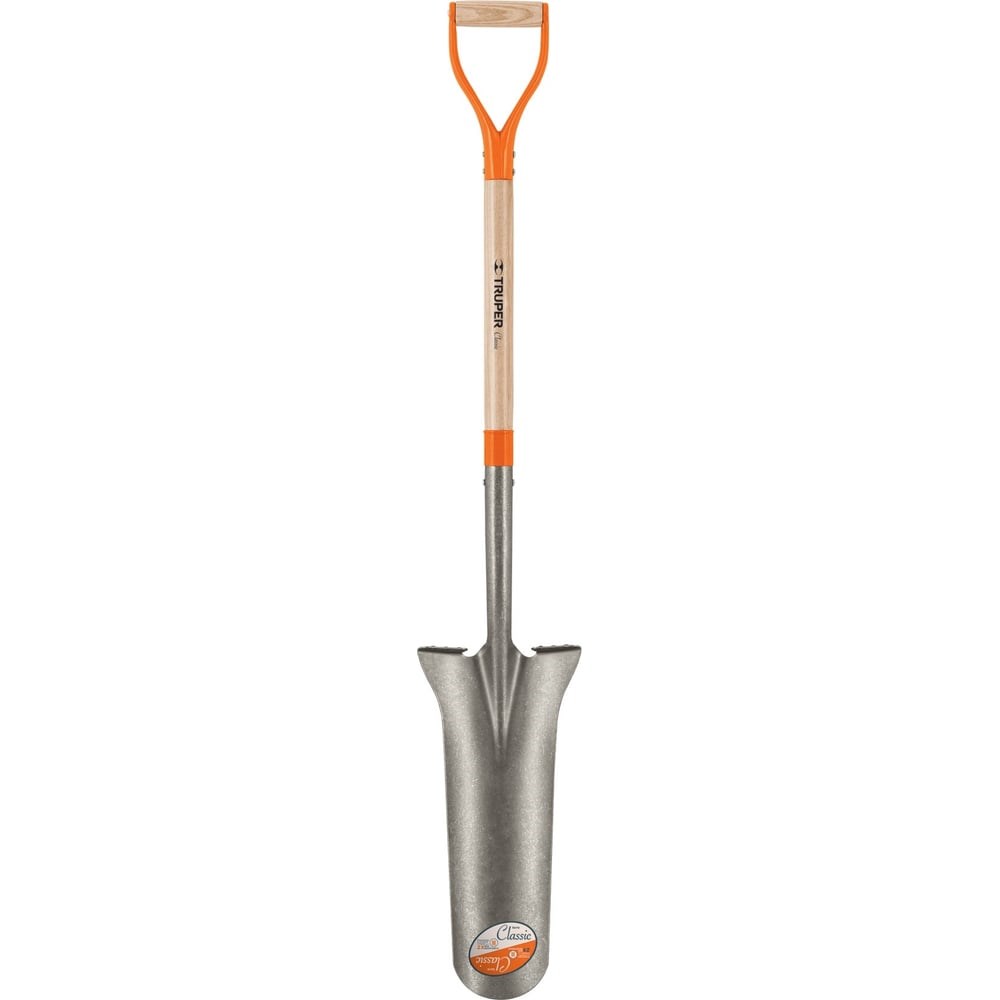 Прямоугольный штык из закалённой стали с защитным покрытием Оптимальная форма для рытья дренажных траншей Удлинённая тулейка с двойным креплением обжимным кольцом и сквозной клёпкой увеличивает прочность конструкции Прочный гладкий черенок из высококачественной древесины Металлическая рукоятка с деревянной вставкой из ясеня Система крепления, предотвращающая проворот руки при работе Увеличенный удобный наступ с передним отворотом