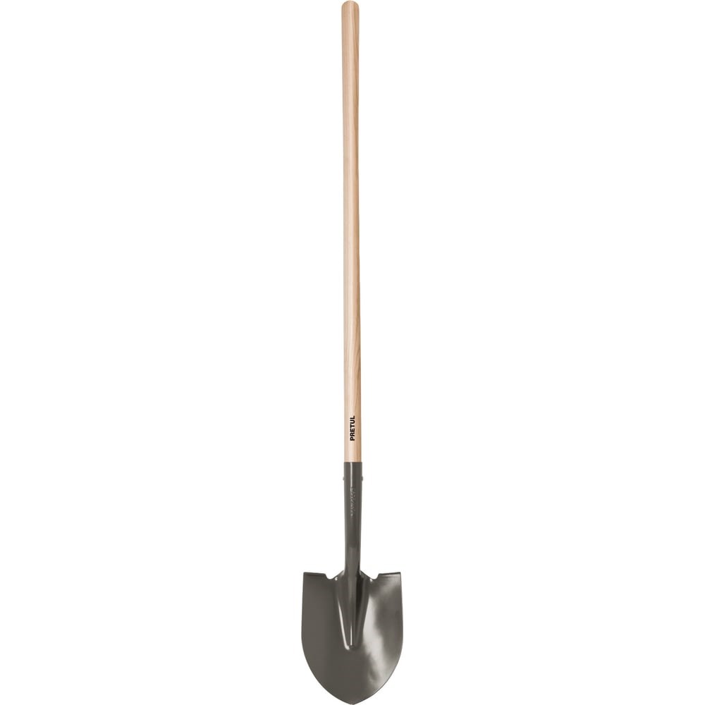 Сферический ковш из закалённой стали с защитным покрытием Универсальная форма с наклоном тулейки: для срезания, перекопки и погрузки грунта Удлинённая тулейка с надёжным креплением сквозной втулкой увеличивает прочность конструкции Прочный длинный гладкий черенок из высококачественной древесины Удобный наступ с передним отворотом