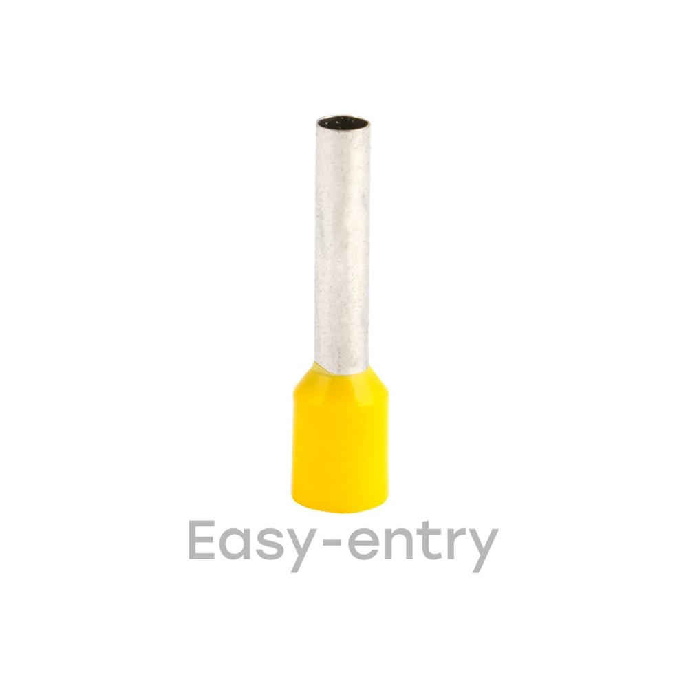 Одинарные втулочные наконечники НШвИ EKF PROxima являются единственными специально разработанными наконечниками под опрессовку, которые полностью заменяют обязательный процесс облуживания многопроволочных медных проводов (типа ПВ-3, ПВС и т. п.) при монтаже различного электрооборудования. Втулочные наконечники состоят из медной луженой трубки, один конец которой развальцован для облегчения ввода многожильного провода и изолирующей манжеты из полипропилена. Технология Easy Entry для легкого монтажа.