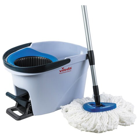 Швабра с отжимом и ведром 10л VILEDA "УльтраСПИН Мини", отжим с педалью, насадка, синий 158010