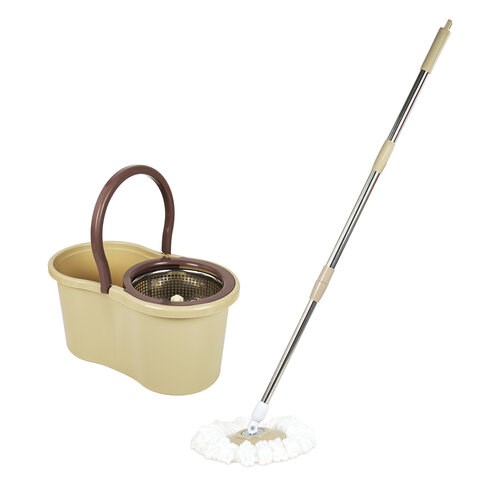 Швабра с отжимом и ведром 7л/5л, отжим центрифуга / рукоятка, 2 круглые насадки, крепление кольцо, бежевый, LAIMA, 607488