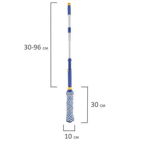 Самоотжимная швабра-бабочка позволяет регулировать влажность губки. Является идеальным вариантом для уборки всех видов полов. Нет ручного отжима, возможность менять насадки, что делает агрегат универсальным в плане мытья плинтусов и плоских поверхностей, телескопические ручки помогают пробраться в дальние уголки и труднодоступные места квартиры, чтобы очистить их от пыли и грязи. Крепление черенка - встроенное. Насадка выполнена из микрофибры, держатель – из пластика. Длина телескопической ручки из алюминия – 30-96 см. Длина рабочей части – 30х10 см. Вес – 673 г.