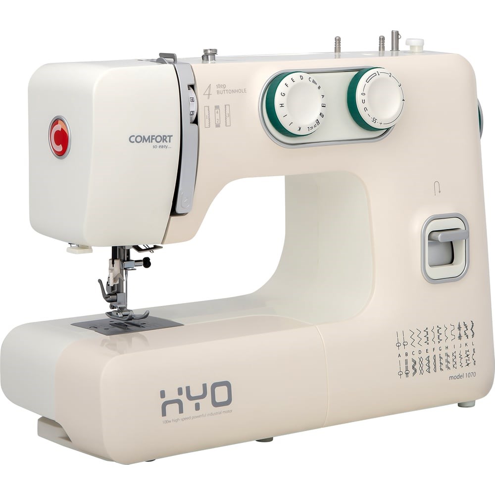 Модель выпущена в 2023 году на крупнейшей китайской фабрике Ямата (YamatoSewingMachine), которая специализируется на выпуске промышленного швейного оборудования. Предлагая свою конструкцию для изготовления бытовых швейных машинок для российского бренда Comfort, инженеры, особо подчеркнули, что не будут закупать и ставить на свою продукцию маломощные двигатели, которые используются на всех остальных бытовых швейных машинках, а установят моторы собственного производства, эти моторы используются для промышленных швейных машин. Мощность модели Comfort1070 составляет 100 Вт. Большая мощность и увеличенное расстояние полезного вылета позволяет уверенно позиционировать новую модель в класс профессиональной швейной техники. Потрясающий дизайн и удивительно удачное его цветовое решение позволят помимо рабочих качеств получать эстетическое удовольствие. Модель выполнена в нежном молочном цвете с отделкой под матовую сталь. Маховое колесо и переключатели имеют зеленые прорезиненные компоненты. Швейная машина Comfort1070 не перегружена лишними операциями и рекламными функциями. 24 строчки и полуавтоматическое выполнение петли под пуговицы одновременно обеспечивают опытного пользователя всем необходимым для полноценного изготовления любой одежды из любых материалов и, в то же время позволят начинающим не «запутаться» в ненужных опциях и максимально комфортно и быстро освоить полезное и интересное хобби.