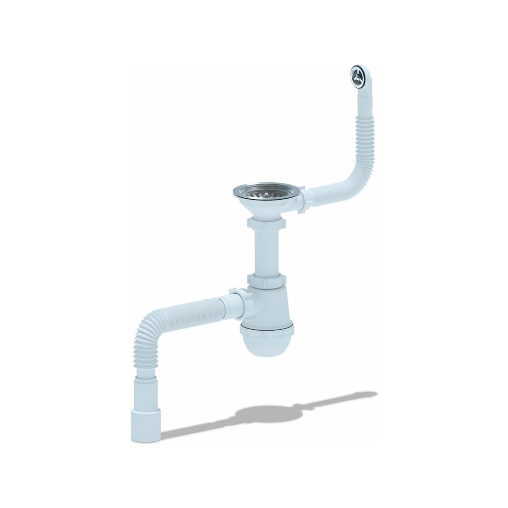 Сифон АНИ Пласт Грот 3 1/2"х40 с круглым гибким переливом и г/т 40x40/50 A0142SA15 с увеличенным корпусом. Сифон оснащен разборным выпуском, нержавеющей решеткой, переливом и гибкой трубой 40х40/50мм. Сетка сливного отверстия служит пробкой