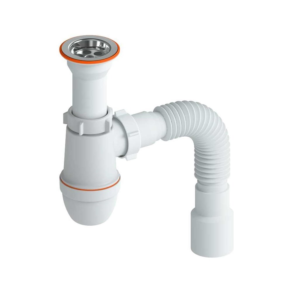 Сифон для раковины в ванной ТМ РМС - это идеальное решение для тех, кто ценит качество и функциональность. Благодаря качественным материалам и надежной сборке обеспечивает защиту не только от неприятных запахов, но и от попадания отходов в канализационную трубу. При производстве продукции ТМ РМС используются только высококачественные материалы. Все модели проходят процесс контроля качества. Установка сифона крайне проста. Сифон для раковины станет незаменимым элементом в вашей ванной, обеспечивая быстрый и эффективный отвод воды. Гофра для сифона выполнена из нержавеющей стали и пластика, что гарантирует долговечность и надежность использования. При производстве продукции ТМ РМС используются только высококачественные материалы. Сифон для тюльпана, умывальника. Литой выпуск 1 ½ (40), винт 6х80, чашка из нержавеющей стали, гибкий отвод в канализацию 40х40/50.